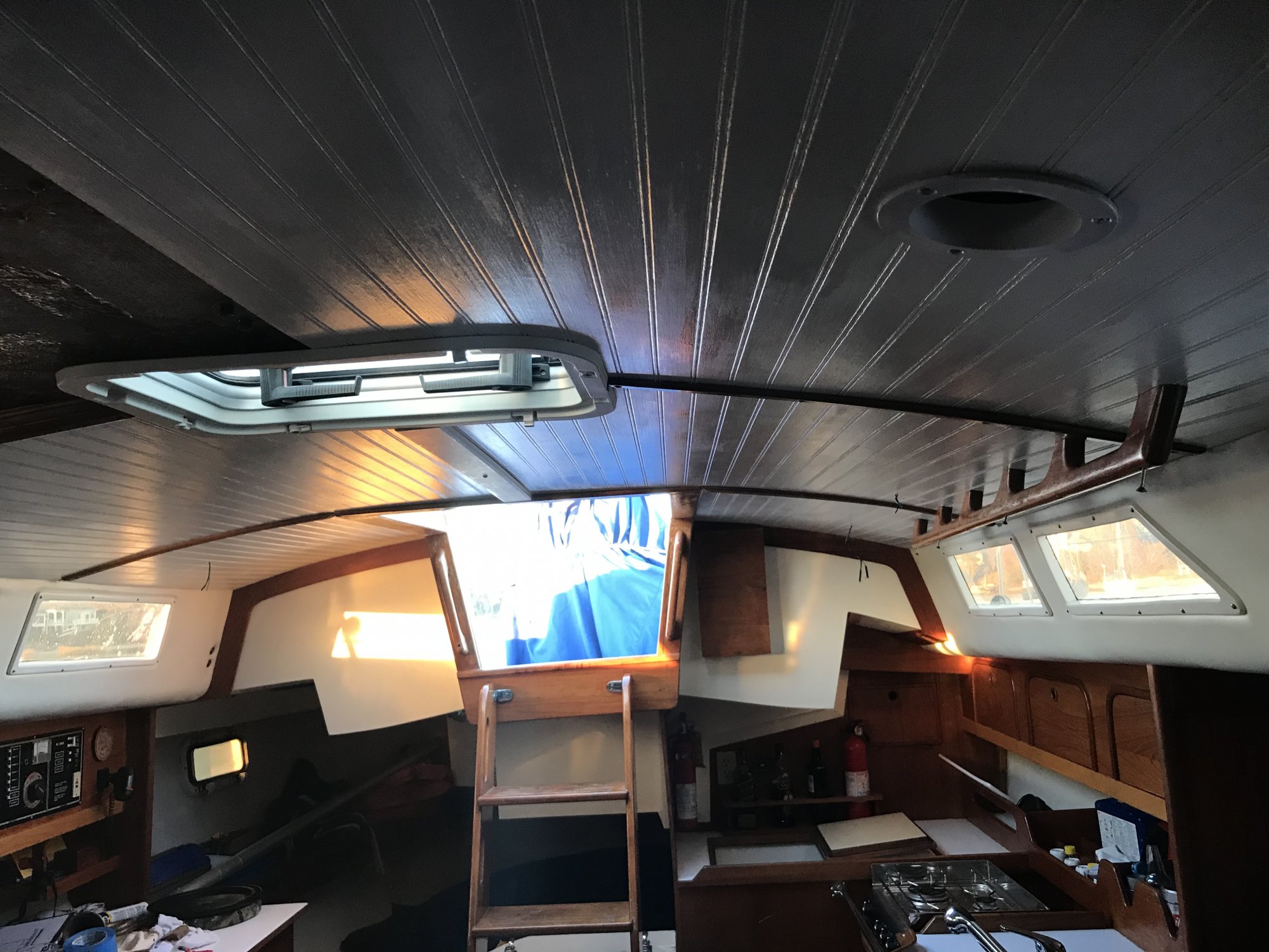 I'm looking to rip out the fabric in the bow berth and install a similar light colored wood strips that are in the salon. What are your recommendations for wood? Poplar? Maple? I don't know the wood they used in the salon, I like the contrast the lighter shade has with the teak trim pieces & veneers. Thank you in advance for any comments, advice, or thoughts.