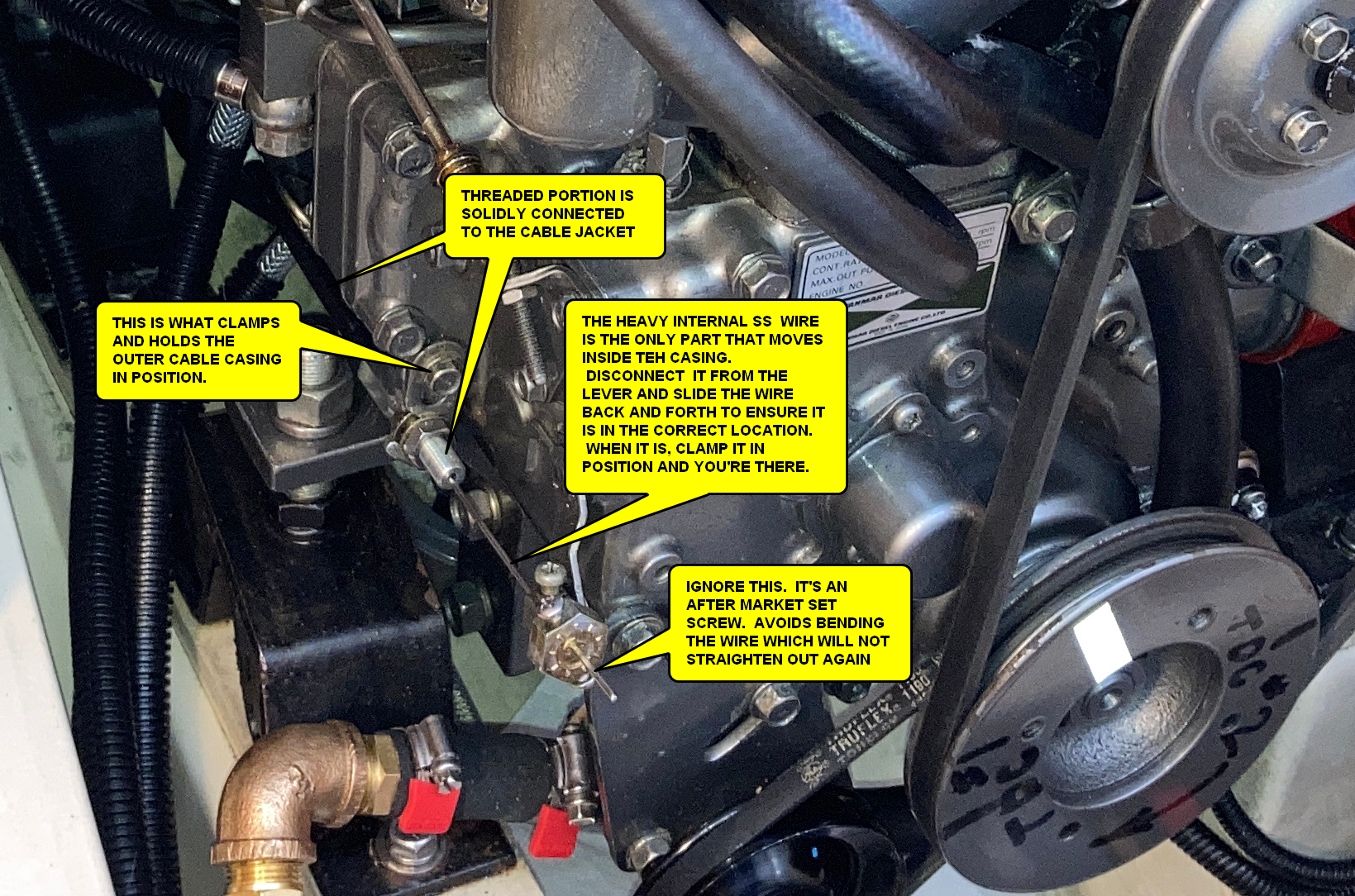 The kill switch does not work. If it is pulled and attached to fuel kill lever it does not pull. If it is pulled and attached to nothing it slides as expected. If it is pulled and I hold the end with it unattached to anything else it doesnt pull. I have attached a pic of the control.cable in the engine compartment. The yellow line parallels the kill switch cable. Is it too long?