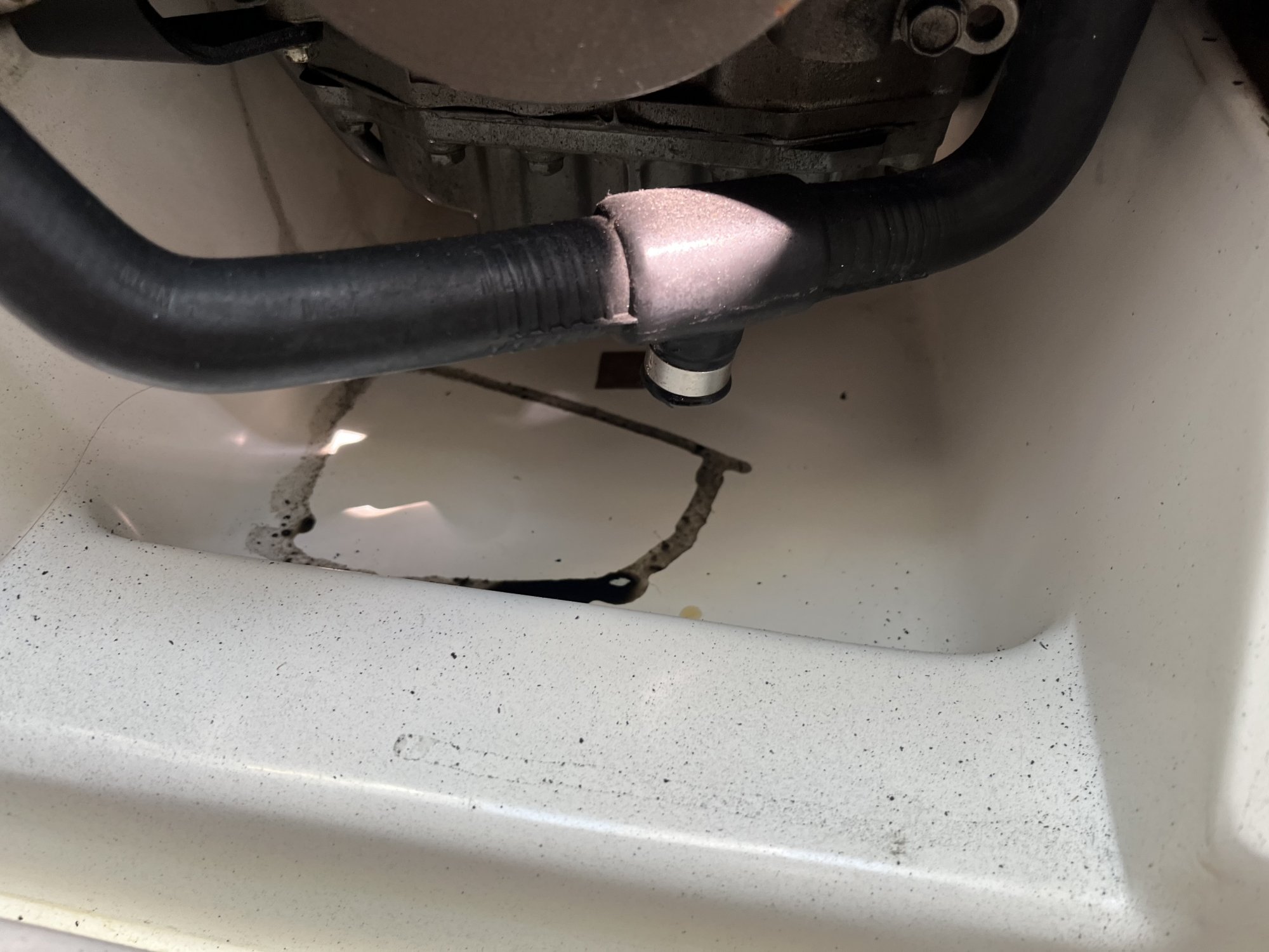 A few weeks later there was an oil drip in a unique square shape drip that seemed to be coming from the starboard side of the motor. The mechanic came back and checked it and said it was “residual oil on the engine that was not cleaned efficiently during the last service”. He cleaned the engine and start/ran the engine at slip and did not notate any further leaks or drips.